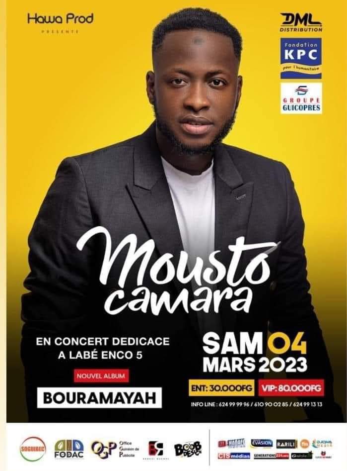 La structure Hawa Prod de l’artiste chanteur guinéen Mousto Camara annonce la dédicace de l’album « Bouramayah« . Ce géant concert dédicace est prévu pour le samedi 04 Mars prochain à Labé enco 5 .