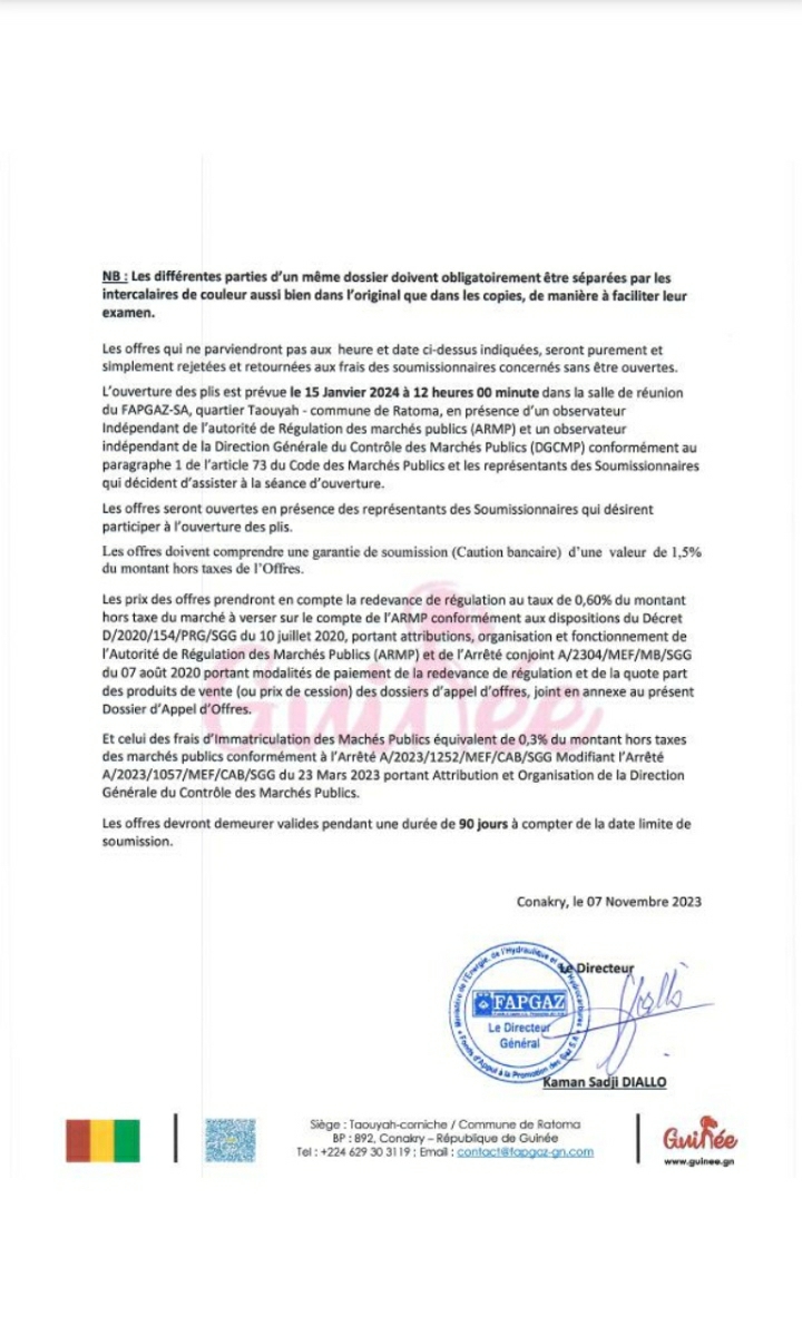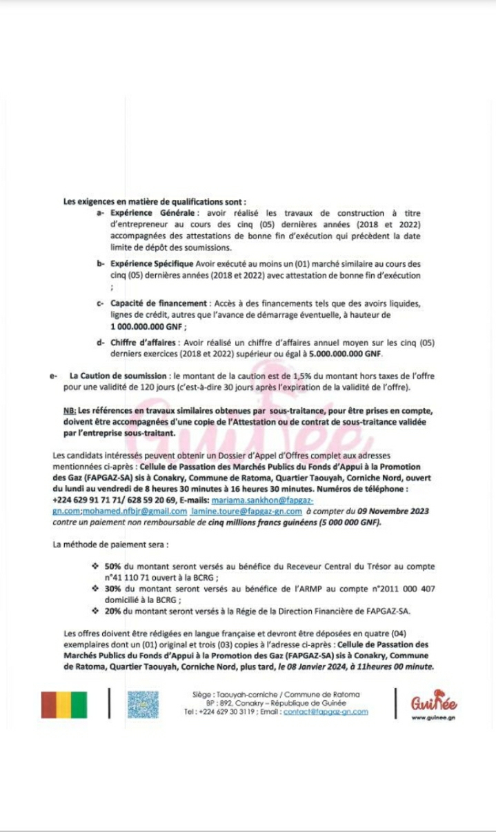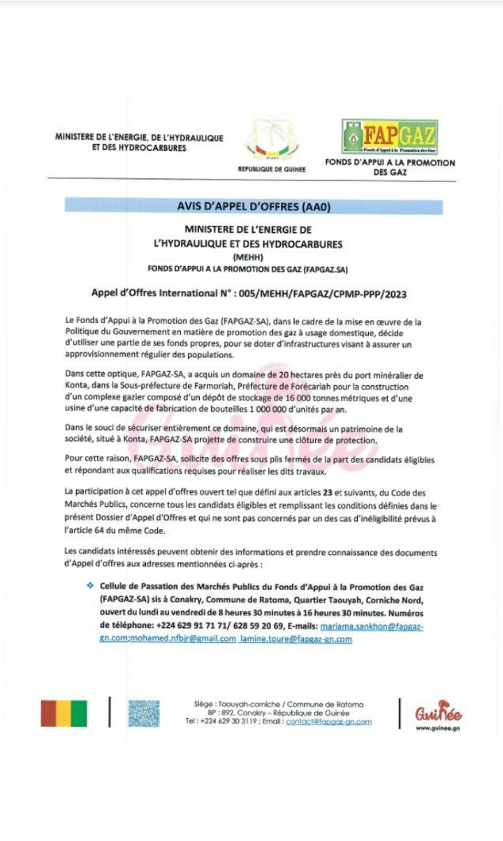 [FAPGAZ] : Avis d’appel d’offres international pour la construction d’une clôture de protection – Africa224|Ne vous trompez pas de site.