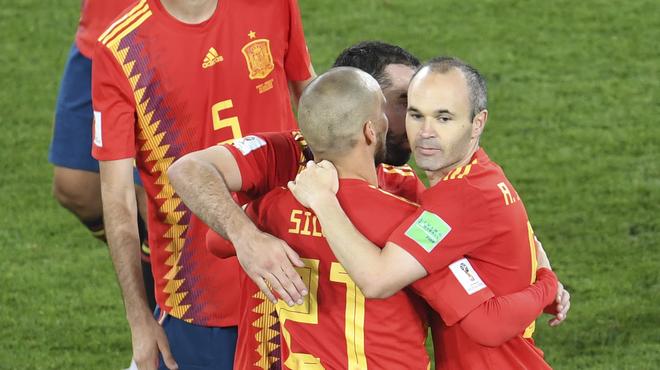L’Espagne s’est qualifiée pour les huitièmes de finale en obtenant le point du nul contre le Maroc (2-2) au Stade de Kaliningrad, pour le compte de la dernière journée du groupe B. Isco et Iago Aspas ont inscrit les buts de l’équipe espagnole et Khalid Boutaib et Youssef En-Nesyri ceux de la sélection marocaine. Suite à ce match nul, l’Espagne termine en première position du groupe B avec 5 points et s’assure une place en huitièmes de finale. Le Maroc, de son côté, finit à la dernière place avec 1 point et ne peut plus se qualifier pour la suite de la compétition, en attendant le résultat du match en cours entre le Portugal (5 points, 2e) et l’Iran (5 points, 3e). Iago Aspas a égalisé pour l’Espagne à la 91e minute, sur une passe de Carvajal. Boutaib avait ouvert le score pour l’équipe marocaine à la 14e minute (0-1). La formation espagnole avait égalisé à la 19e minute grâce à Isco, servi par Iniesta (1-1). Le Maroc avait récupéré l’avantage à la 81e minute grâce à une tête de Youssef En-Nesyri, servi par Fajr (1-2). La sélection marocaine a vu six de ses joueurs écoper d’un carton jaune : El Ahmadi (21e), Amrabat (29e), Da Costa Manuel (31e), Boussoufa (31e) et Hakimi (90e). Les deux équipes ont cadré exactement le même nombre de tirs : 3 de chaque côté. La Roja a eu la mainmise sur le cuir avec 69 % de possession contre 31 pour les Lions de l’Atlas. L’Espagne jouera face à la Russie lors de son prochain match, le dimanche 1er juillet à 14 heures.