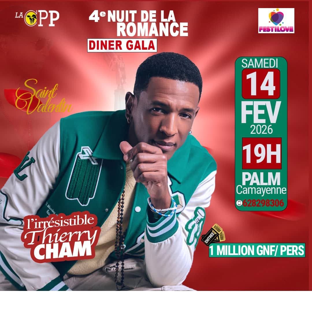 Arrivé à Conakry depuis quelques heures, Thierry Cham est fin prêt pour la Nuit de la Romance prévue ce 14 février. La star ivoirienne du zouk love promet une soirée riche en émotions à l’occasion de la Saint-Valentin.