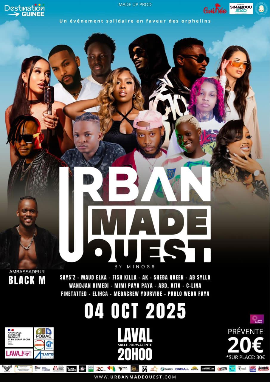 Le 4 octobre 2025 à Laval, Wandjan Dimedi, AB 6ylla, Sheba Queen, Mimi Payapaya ou encore Fish Killa se produiront sur scène. Cette 4ᵉ édition, pensée pour mettre en lumière les artistes guinéens dans l’Hexagone, sera également marquée par la présence de Black M, désigné ambassadeur du festival.