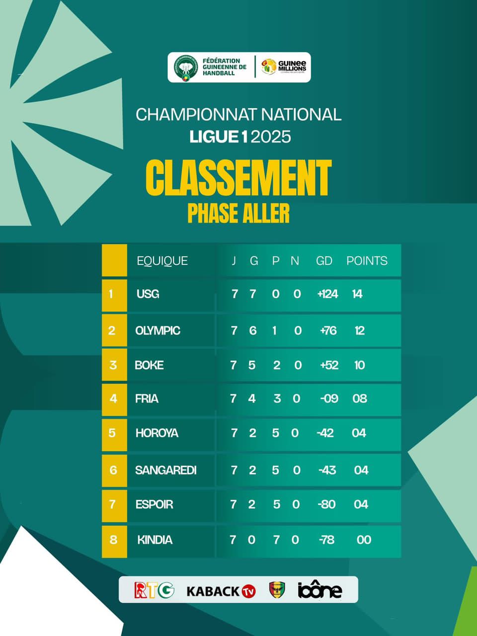 Après 56 matchs disputés en 7 journées, la phase aller du Championnat National de Ligue 1 Handball Hommes s’est achevée ce vendredi à Conakry.