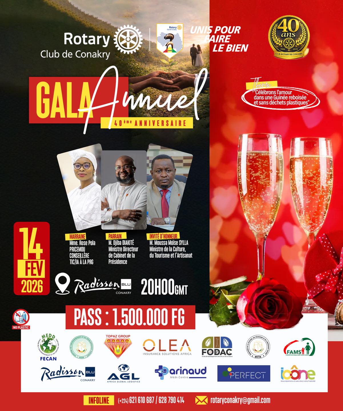 À l’occasion de ses 40 ans d’existence, le Rotary Club de Conakry met les petits plats dans les grands. Le 14 février prochain, le Radisson Blue de Conakry accueillera le gala annuel de l’organisation, un rendez-vous festif qui s’inscrit cette année dans une dynamique particulière : lever des fonds pour financer des initiatives de reboisement et encourager l’adoption de comportements respectueux de l’environnement au sein des communautés.