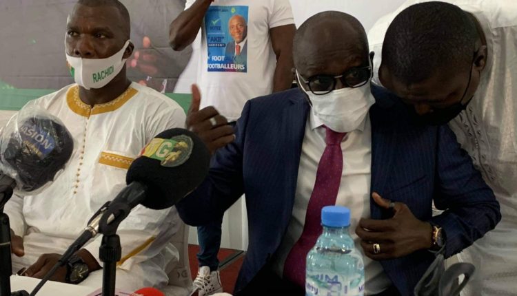 Candidat au poste de la présidence à la Fédération Guinéenne de Football, Abdoul Karim Bangoura “AKB” en compagnie de son directoire de campagne et quelques acteurs sportifs du pays, notamment des anciens joueurs du Syli entre autres Souleymane Oularé , Fodé Mansare , Ousmane pour ne citez que ceux-là, était devant un parterre de journalistes ce vendredi au chapiteau du palais du peuple pour dévoiler les grandes lignes de son programme.